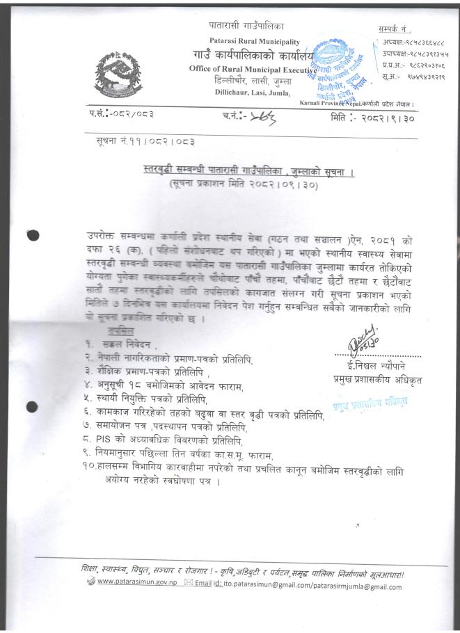 स्तरवृद्धि सम्बन्धी पातारासी गाउँपालिका,जुम्लाको सूचना |